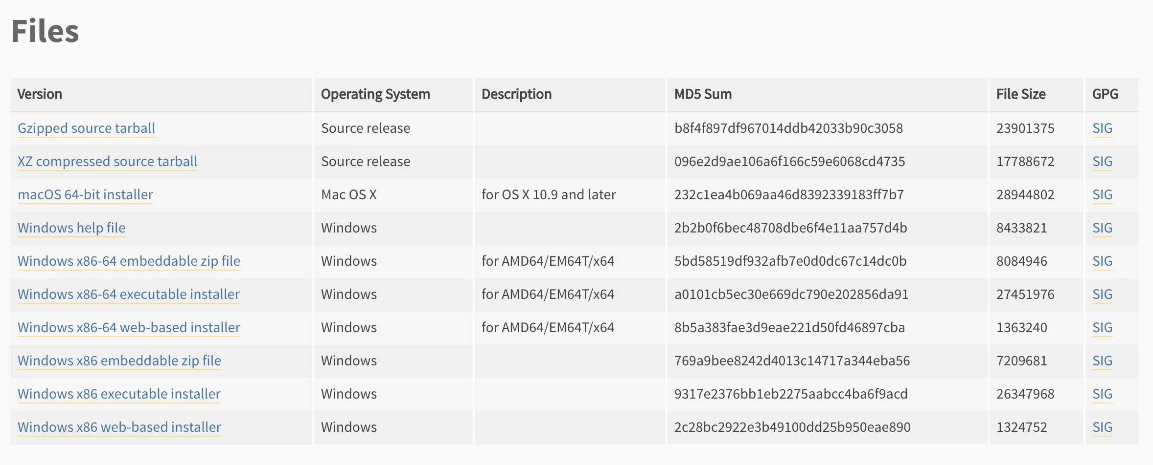 Navigate to the Python 3.8.0b4 release page. Scroll down to the Files section: